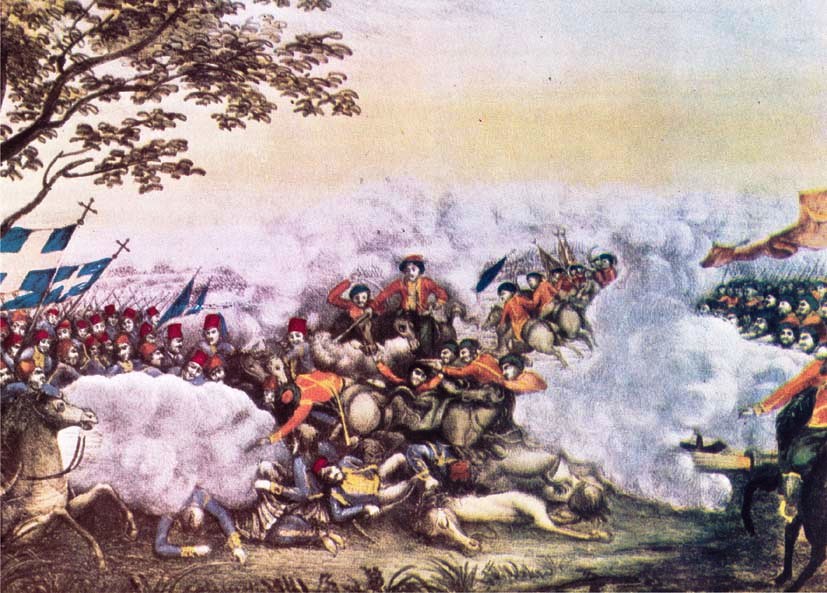“Τρίτη τότε και πεισματωδεστέρα επανελήφθη η έφοδος των εχθρών. Αποτυχούσης και ταύτης, ηκολούθησεν άλλη αποφασιστικοτέρα. Ανθίσταντο μεν οι Έλληνες μετά γενναιότητος και απελπισίας, αλλ’ ο κίνδυνος μιας κρίσεως δυστυχούς επέκειτο πλέον, ότε πλησίστιοι οι εχθροί επροχώρησαν τα δε τηλεβόλα θαυμασίως ενεργήσαντα κατά την δωδεκάωρον αυτήν μάχην, εσιώπησαν τελειωθείσης της θρυαλλίδος.